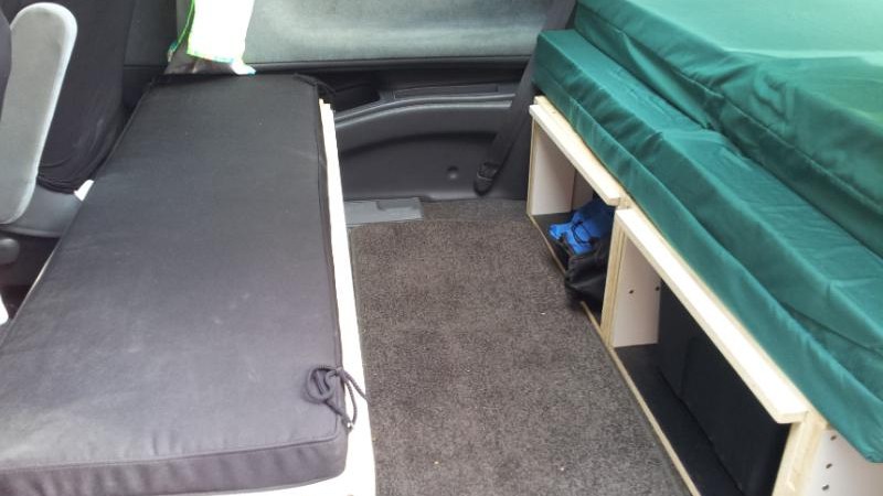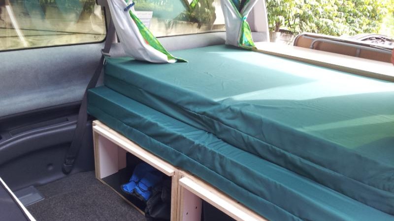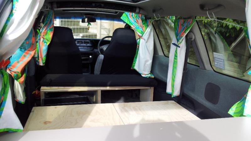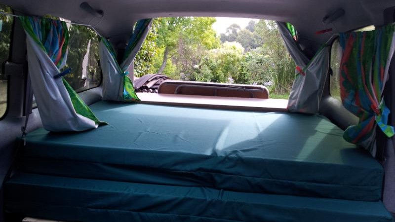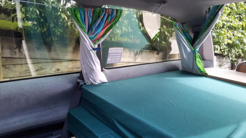 All our vans come with a valid Rego and valid WOF. They have a comfortable double bed (1.9m x 1.35m wide) which can be folded back to allow seating inside the van. They come with a foam mattress, duvet and duvet cover, two pillows, pillow covers, and camping equipment including two chairs, table, plates, cutlery, cooker stove, tea towels and storage bins that stow under the bed frame.