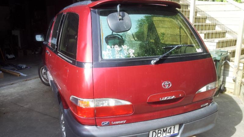 Toyota Estima 1992, Pale Blue, 2.4l, Petrol, Automatic, approximately 201,000 km, rego ABS895. Sunroof, 2-seater, 2-sleeper. Small dent in back hatch as per photo. (ref 28 - ABS895)