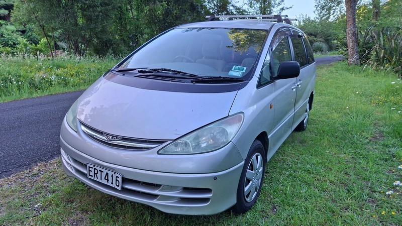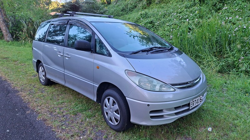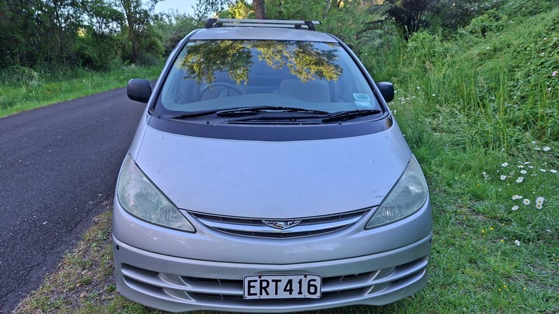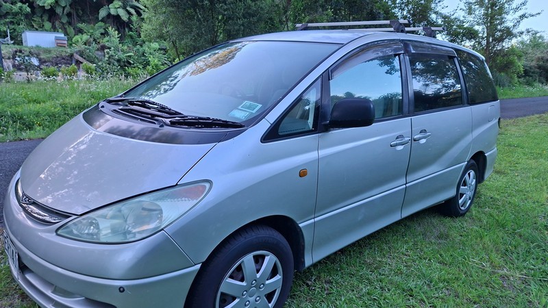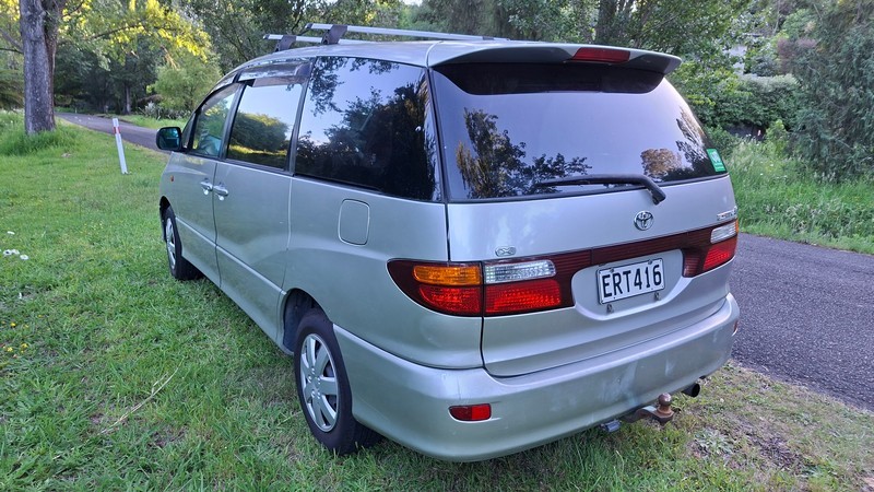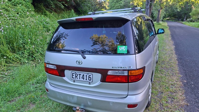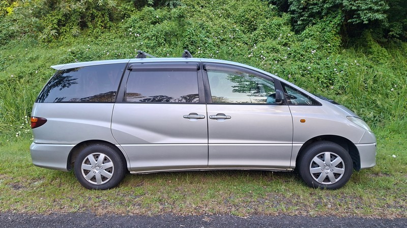 Toyota Estima 2002, Silver, 2.4l, Petrol, Automatic, approximately 191,000 km, rego ERT416. Modern looking 2-side-door model, 2-seater, 2-sleeper. Self-Contained Certified (Green). Campervan’s come with a foam mattress, duvet and cover, two pillows and covers. Camping gear included e.g. 2 chairs, table, plates, cutlery, cooker stove and large storage bin that stow under the bed frame. (ref 88 - ERT416)