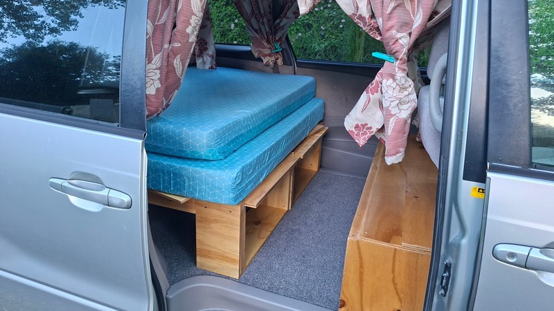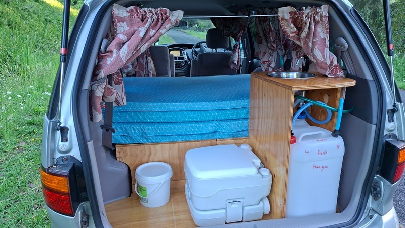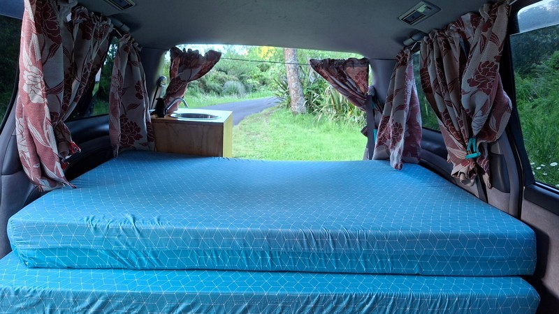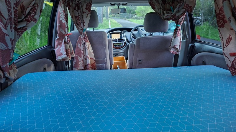 Toyota Estima 2006, Gold, 2.4l, Petrol, Automatic, approximately 173,500 km, rego KHP570. Premium looking, 2-side-door model, 2-seater, 2-sleeper. Self-contained-certified (Green). Campervan’s come with a foam mattress, duvet and cover, two pillows and covers. Camping gear included e.g. 2 chairs, table, plates, cutlery, cooker stove and large storage bin that stow under the bed frame. (ref 83 - KHP570)